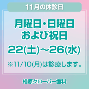11月休診日情報|楢原クローバー歯科|八王子・楢原町の歯医者