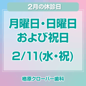 2月休診日情報|楢原クローバー歯科|八王子・楢原町の歯医者